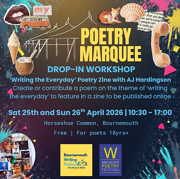 I'm running a drop in workshop at the Poetry hub at Bournemouth Writing Festival. This will be a playful workshop that gets you making. We'll explore prompts for making poems on the theme of 'home' to put into our DIY poetry zines - combining visual storytelling with your words.